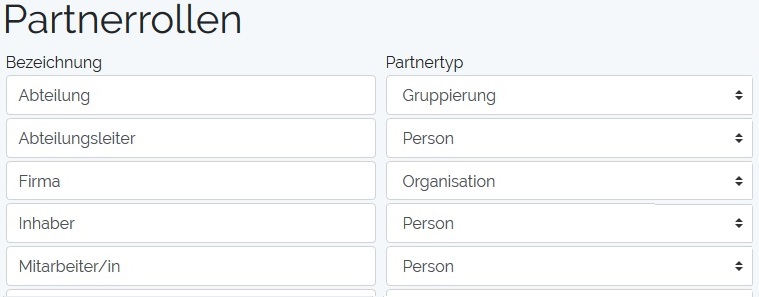 geben und in den Zuordenbaren Partnerrollen folgende Einträge vorhanden sein